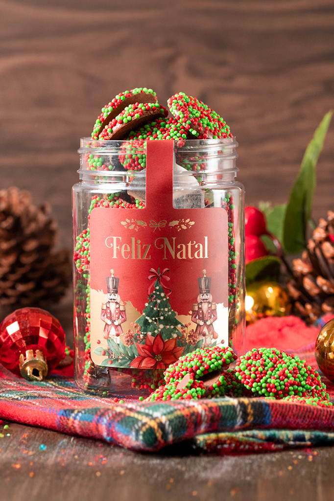 ✨ Nosso chocolate ao leite artesanal, coberto por dragês vermelhas e verdes, é a combinação perfeita para celebrar o espírito do Natal em cada pedacinho. 🎄🍫