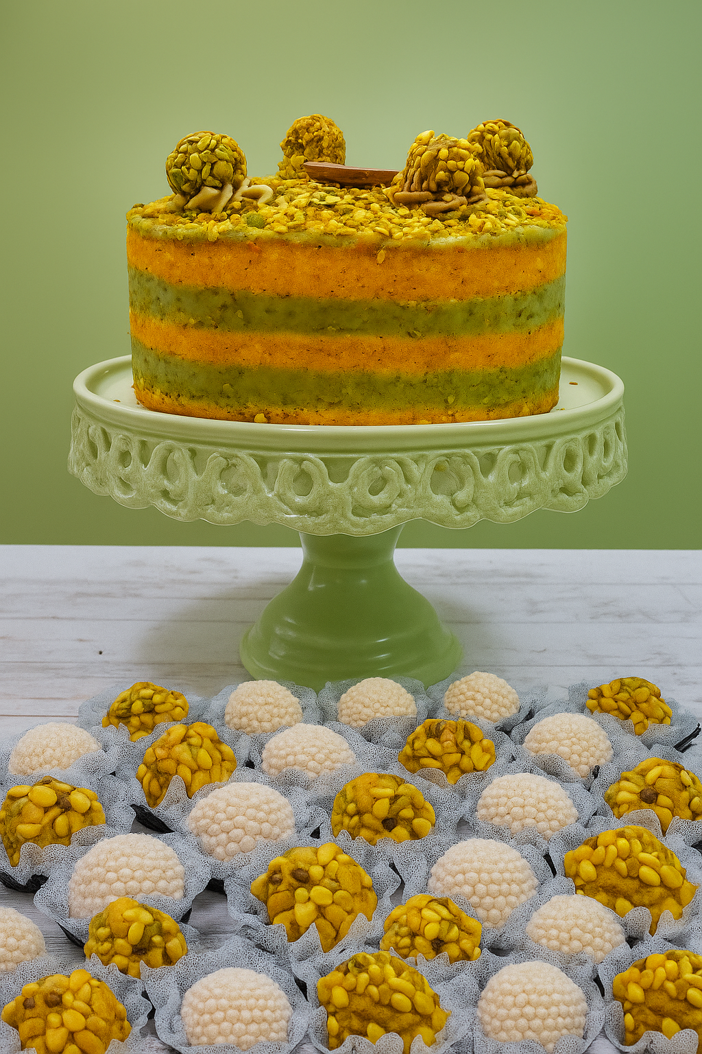 O kit festa acompanha um bolo de 2,2kgs + 80 docinhos.
