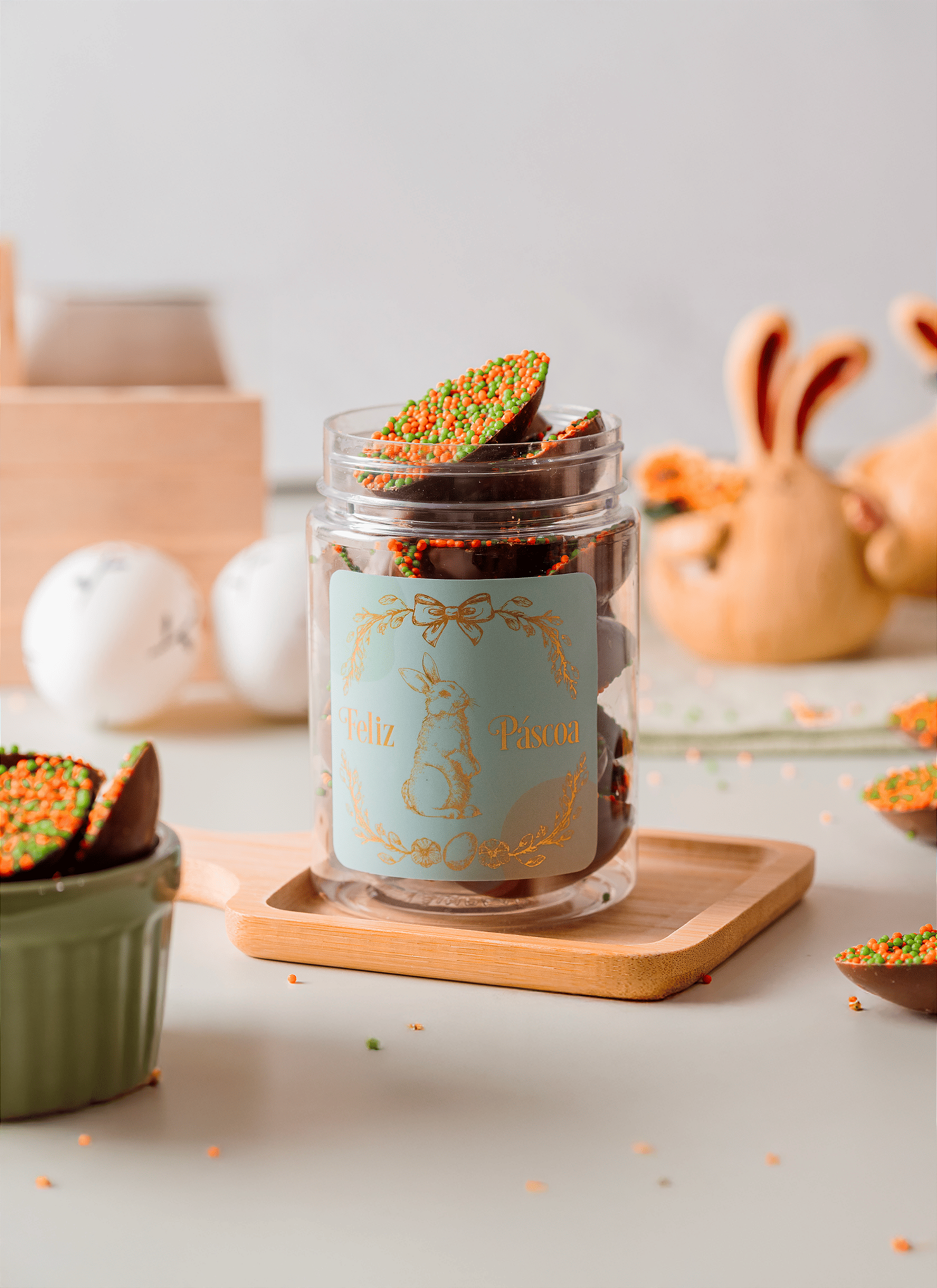 Potinho com metades de ovinhos de chocolate ao leite, cobertos por dragês crocantes que trazem ainda mais cor e textura a cada mordida. Uma combinação divertida e irresistível, perfeita para presentear ou se deliciar com pequenos momentos de doçura.